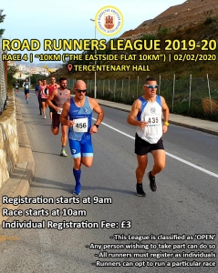 | Local | Road Races | 02/02/2020 | “Rock Runners” League Race 4 (“The Eastside Flat 10km” ≈10km) | Tercentenary Hall | No | Yes |