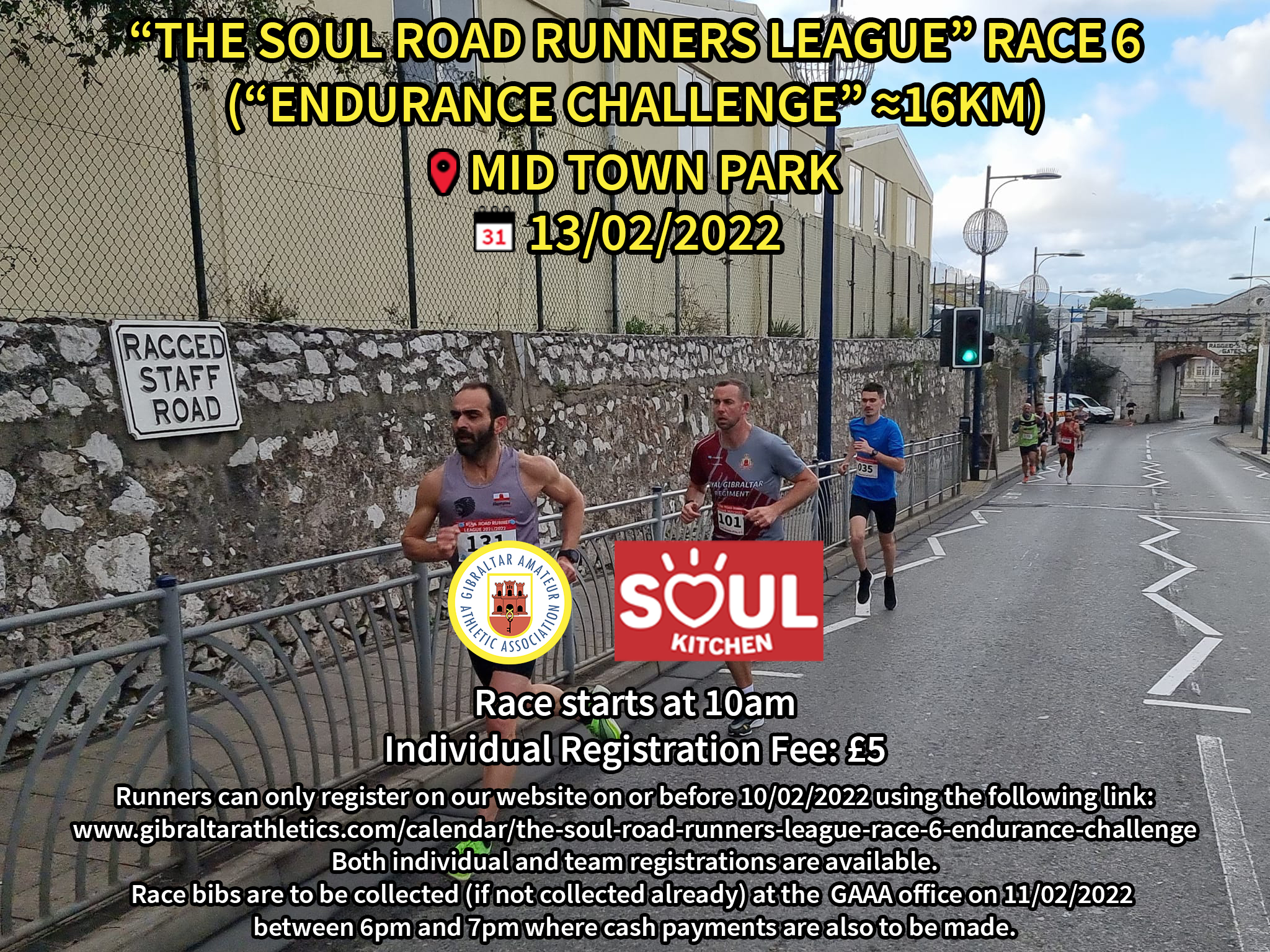 | Local | Road Races | 13/02/2022 | The Soul Road Runners League 2021/2022 Race 6 (“Endurance Challenge” ≈16km) | Mid Town Park | No (Expired) | Yes |
