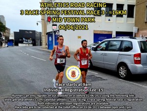| Local | Road Races | 27/06/2021 | Gibraltar Athletics International Half Marathon 2021 | American War Memorial | No (Expired) | Yes | ||