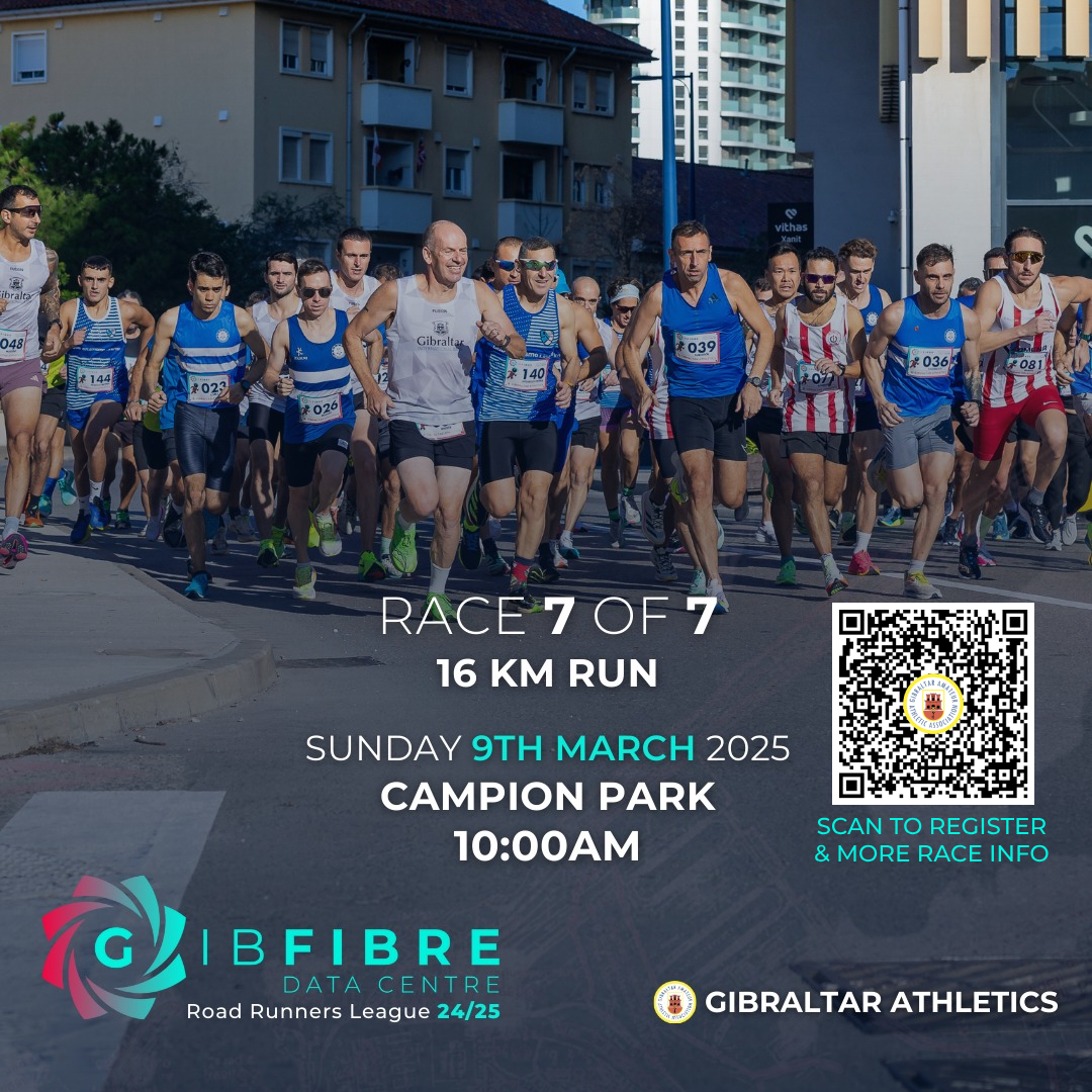 | Local | Road Races | 09/03/2025 | The GIBFIBRE Road Runners League 2024/2025 Race 7 (≈16km) | Campion Park | No (Expired) | Yes | ||